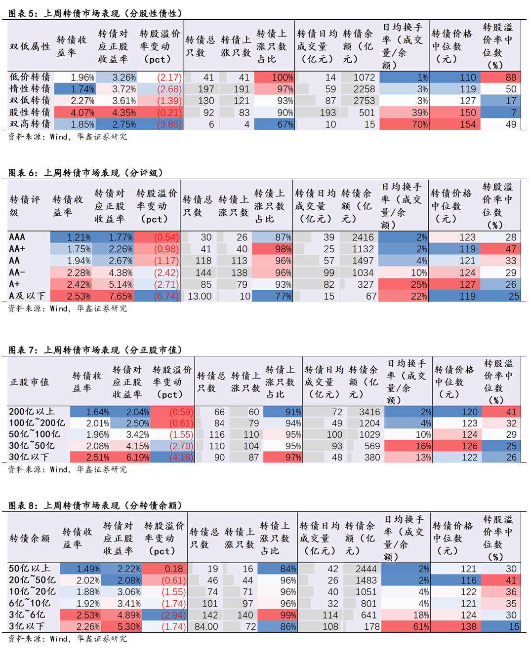 市集神志方面,上盘活债全市集周均成交563亿元,环比下降6%;次新债、低评级转债、双高转债等传统炒作券的来去赓续保抓低迷状态。