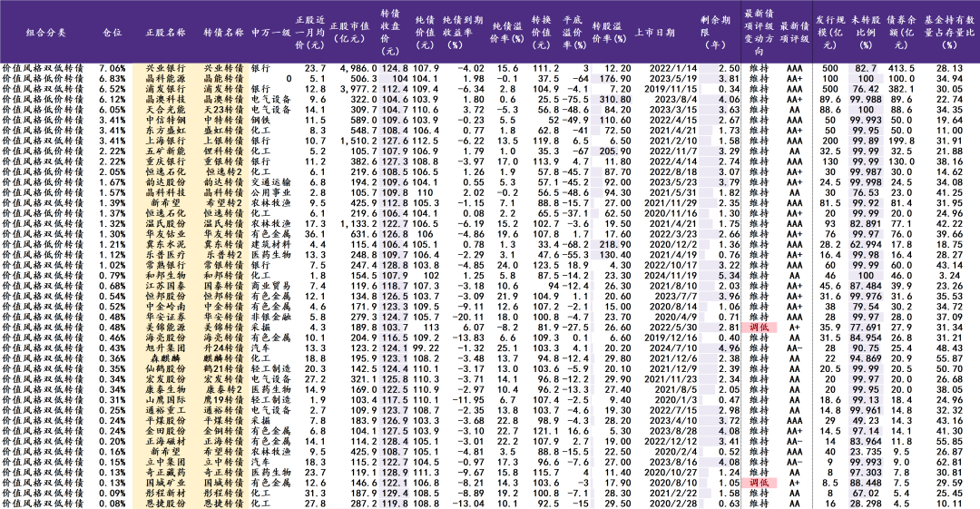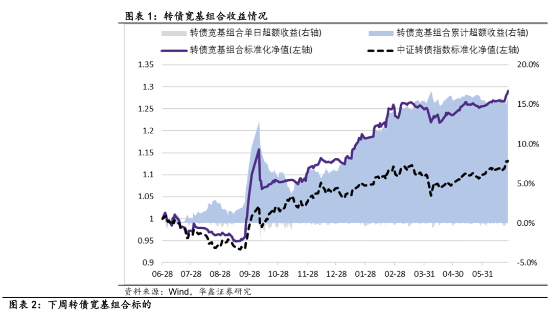 大类财富竖立角度,缩表周期下股债性价比趋势性偏向债券,而权益立场趋势性偏向价值;现在点位下长债性价比略优于价值类权益财富,后续要是权益类价值财富赓续着落,或能出现较好的介入窗口。从上至下宽基组合不雅点为:权益价值立场(仓位80%),30年国债ETF(仓位20%)。因此最新转债组合的股性转债仓位为0,一齐竖立价值立场双低和廉价转债(类债财富),总仓位70%。其中,价值立场廉价转债剩余时刻较长且具备下修预期,银行转债退市带来的流动性从容逢低布局。价值立场双低转债现在具备正股和转债方面双重上风:正股所属行业估值大批偏低;转债方面,以高评级转债为主,估值抓续被压制、稀缺性渐渐增强。图2展示出转债宽基组合具体宗旨。转债宽基组合上周跑输中证转债指数-0.24pct。2024年7月建仓以来转债宽基组合累计跑赢中证转债指数15.85pct,最大回撤7.7%(同期中证转债指数最大回撤7.5%)。